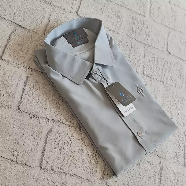 پیراهن مردانه مجلسی پارچه دوشین دکمه آشکار