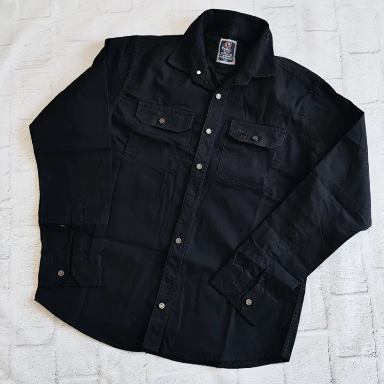 پیراهن مردانه کتان کمل مشکی دو جیب