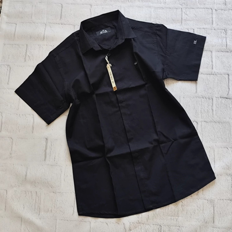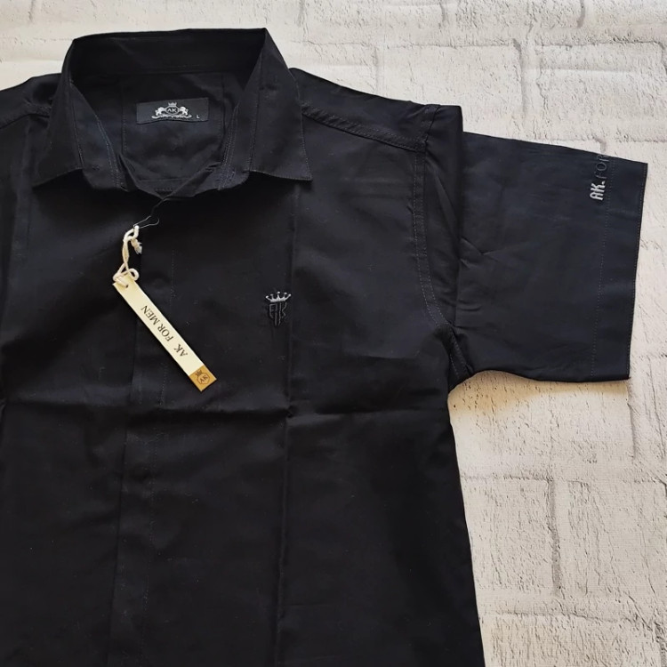 پیراهن مردانه مشکی A.K آستین کوتاه سر آستین کش