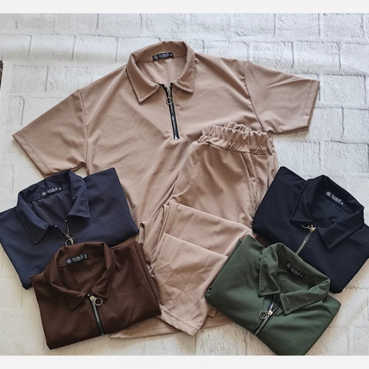 ست تیشرت شلوار مردانه مراکشی یقه دار یقه زیپ
