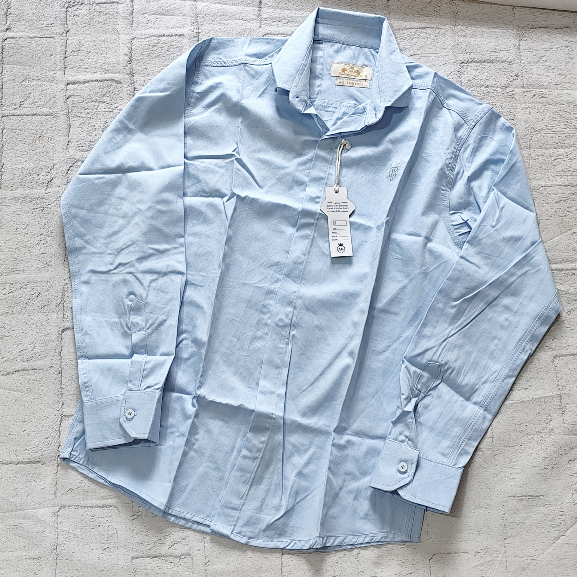 پیراهن مجلسی نخی AK دکمه مخفی رنگ آبی روشن