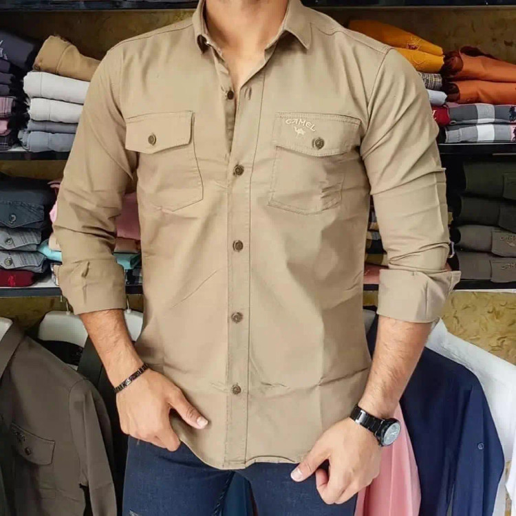 پیراهن مردانه کتان کملcamel.. اندامی. دکمه فلز. آستین بلند..