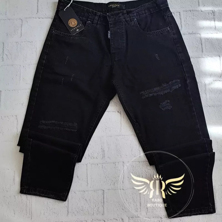 شلوار جین مام فیت مردانه مشکی زانفیکس دار بهترین قیمت و کیفیت