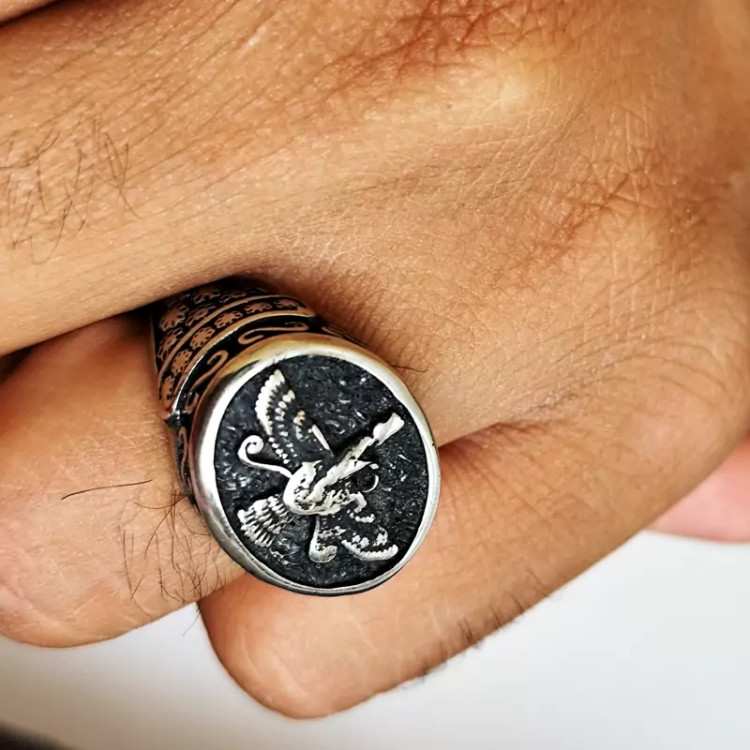 انگشترمردانه استیل طرح فروهرپارس اهورا مزدا