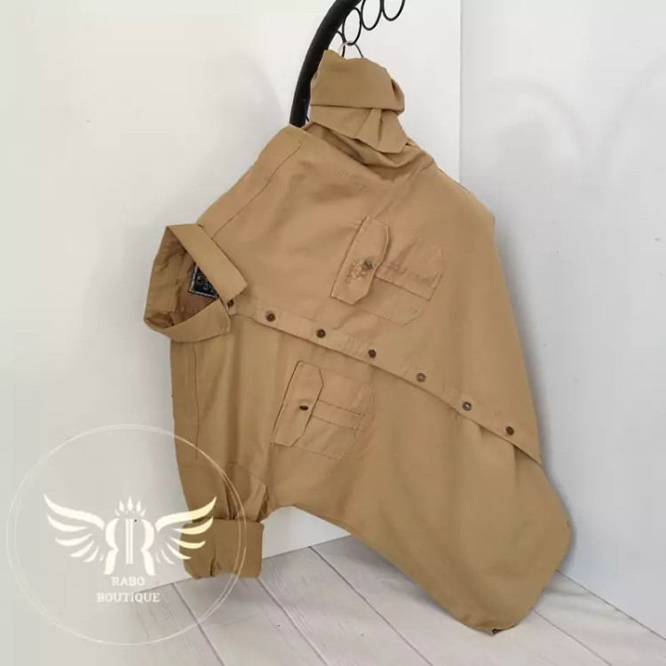پیراهن مردانه کتان کملcamelسایز بزرگ جیب پاکتی