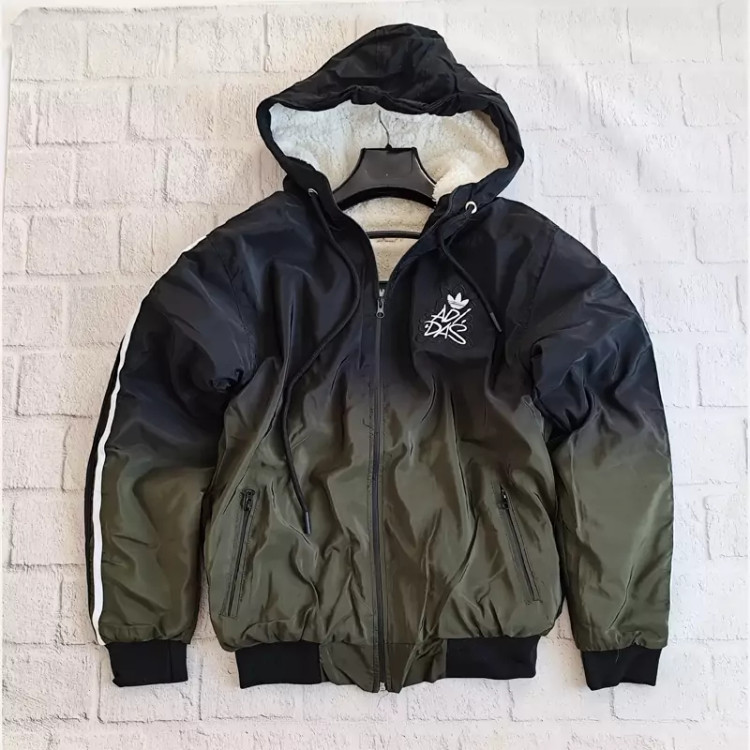 کاپشن بادگیر مردانه داخل خز طیفی سبزیشمی و مشکی