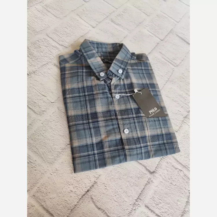 پیراهن مردانه.پیراهن چهار خانه پیراهن طرح چهار خونه پیراهن پولو مردانه تک جیب